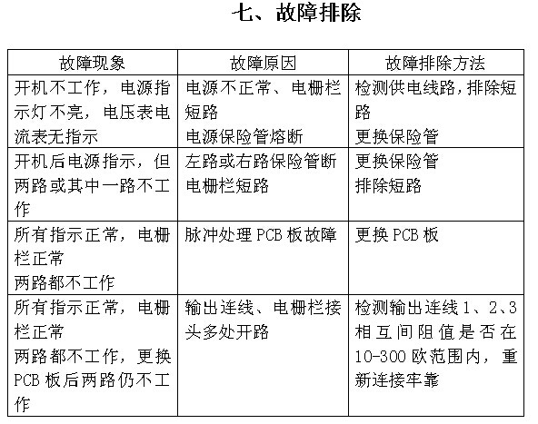 八、后期維護(hù) (一)、電柵欄 1、入水電極: 由不銹鋼鋼管做成的入水電極,是將設(shè)備產(chǎn)生的刺激電流導(dǎo)入水中的終端器件,在整套設(shè)備中尤為重要,鋼管長(zhǎng)期浸泡水中表面會(huì)生成水垢及微生物附著,有些客戶購(gòu)買的不銹鋼管質(zhì)量不好,表面會(huì)產(chǎn)生銹蝕層,當(dāng)這些東西達(dá)到一定厚度時(shí),便嚴(yán)重影響鋼管的導(dǎo)電性能,甚至不導(dǎo)電。這樣水中就沒有刺激電流,嚴(yán)重影響攔漁效果,直至攔漁無(wú)效果。 我們強(qiáng)烈建議長(zhǎng)期開機(jī)的用戶每季度,遇洪開機(jī)的用戶每次前,檢查、清理、擦拭一次入水電極,保證其表面清潔,導(dǎo)電良好。 2、輸電線路: 特別是機(jī)器到電柵欄間的這一段,應(yīng)做到經(jīng)常檢查,保證外皮絕緣良好。導(dǎo)線與線鼻、線鼻鋼管之間應(yīng)緊密壓接,不得有銹蝕出現(xiàn),保證其良好的導(dǎo)電性能,有條件的用戶應(yīng)該請(qǐng)專業(yè)人員每半年做一次導(dǎo)體電阻測(cè)試,整條線路的電阻值不得大于1歐姆。 1、 機(jī)器: 應(yīng)始終保持清潔,不用時(shí)應(yīng)做防塵,防潮保管,且每半年開機(jī)運(yùn)行20分鐘。 編 制:貝爾電子科技有限公司 編制時(shí)間:2016.4